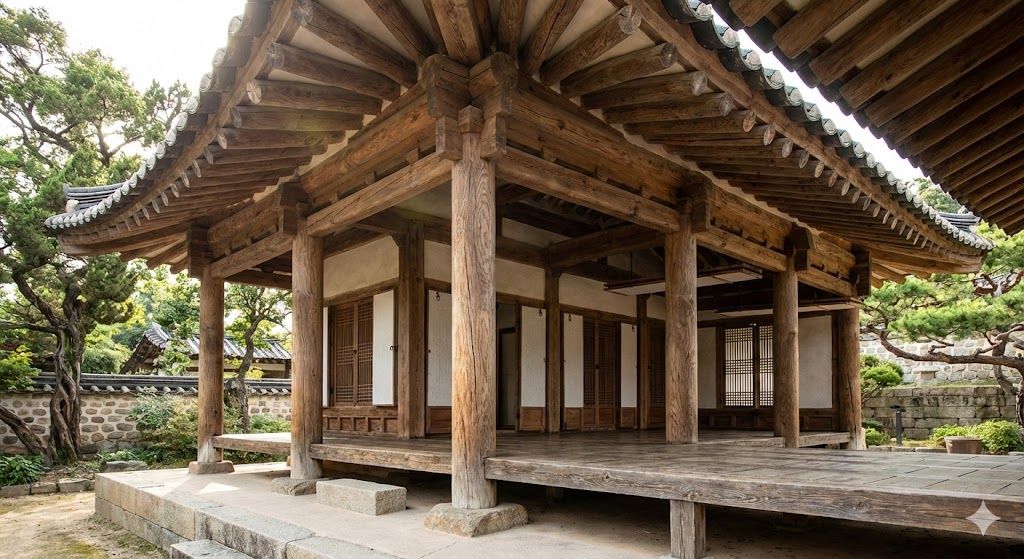 구조적 안정성(Structural Stability): 군더더기 없는 가구 구조의 견고함. 비례의 미(Proportional Aesthetics): 기둥과 보, 처마가 이루는 시각적·수학적 균형. 가변적 공간(Spatial Flexibility): 창호를 통한 실내외 공간의 유기적 연결. 기후 적응성(Climatic Adaptation): 일조량과 통풍을 고려한 처마 및 온돌 설계. 재료의 물성(Material Properties): 가공을 최소화한 천연 목재와 석재의 조화로운 활용.