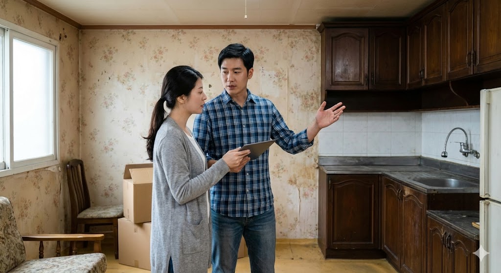 내부 마감 복원: 벽·천장 도배, 바닥 장판 교체로 기본적인 생활 품질을 확보했으며, 파손·노후 부위는 부분 보강을 병행했다.